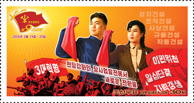 1945年8月15日,祖国光复的历史性事业得以实现,从此朝鲜人民能够发行自己的邮票。 打倒日帝,解放祖国后,伟大领袖 金日成 同志深切了解到邮票发行事业的重要性和意义,英明领导了新朝鲜的邮票发行事业。 因此,于1946年3月12日,发行了解放后朝鲜的首批邮票“三仙岩”和“无穷花”。 伟大领袖 金日成 同志亲自视察了邮票,说朝鲜人民终于可以用朝鲜邮票进行书信往来,并在邮票发行方面给予了宝贵指导。 邮票反映了在伟大领袖 金日成 同志的领导下要建设富强的自主独立国家的我国人民的意志和热烈的爱国心。